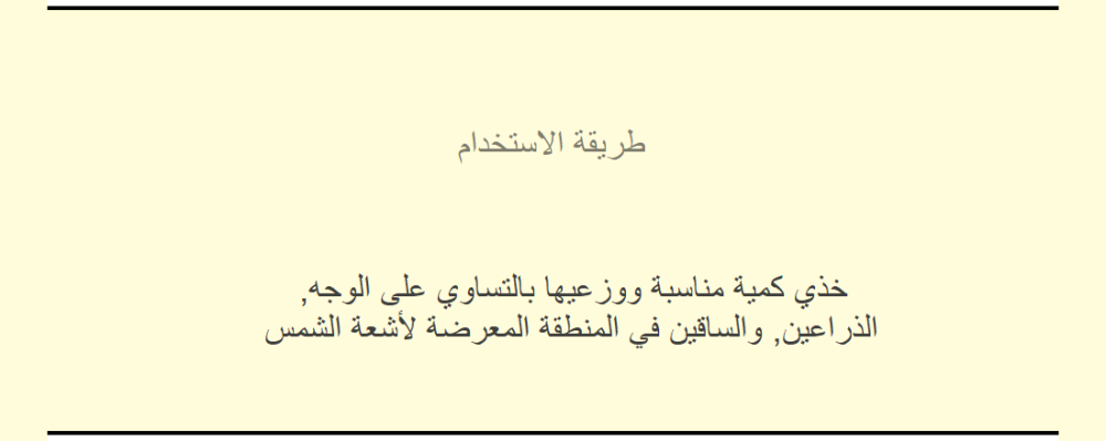 يتم وضع كمية مناسبة على البشرة، الوجه والايد ي