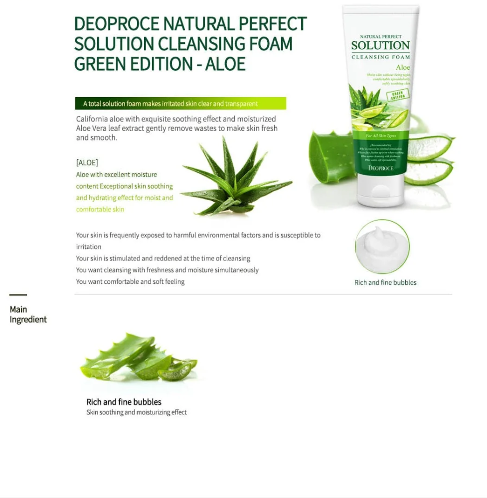 ترطيب البشرة بدون شد ومريحة على البشرة ، الصبار يعطي رطوبة ممتازة للبشرة ، كما أنه مهدئ استثنائي ، تنظيف عميق و معتدل للبشرة وتزيل الشوائب من مسام البشرة